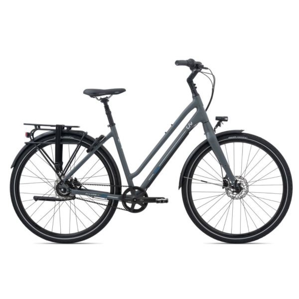 De Liv Allure CS heeft een lichte aluminium frame, hydraulische schijfremmen, beltdrive en MIK-achterdrager.